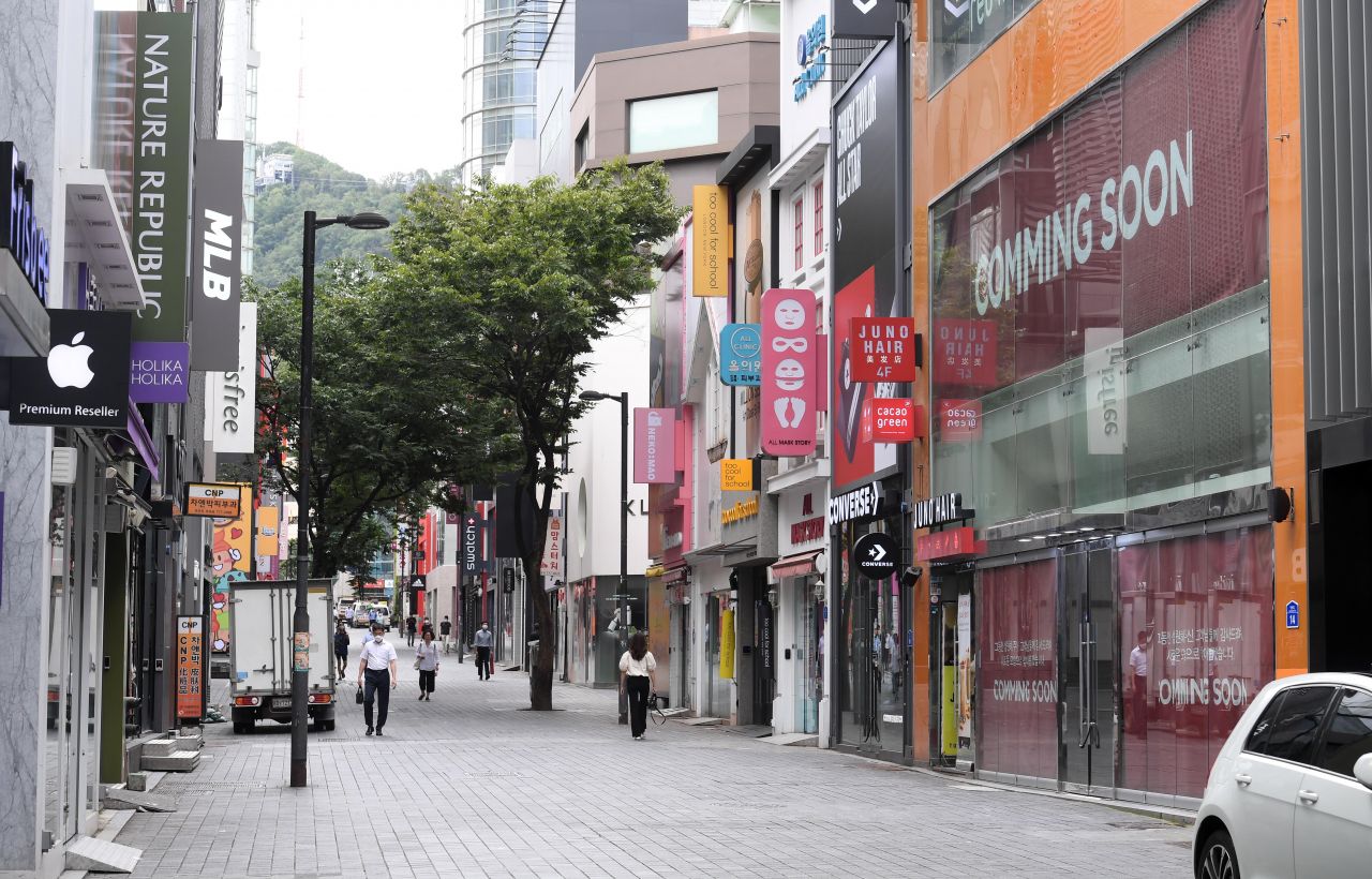 코로나19 재확산으로 정부의 방역 조치가 강화되고 시민들의 소비 활동마저 위축되면서 자영업자들의 고통이 가중되고 있다. 31일 음식점과 각종 점포가 밀집한 서울 중구 명동 거리가 한산한 모습을 보이고 있다./김현민 기자 kimhyun81@