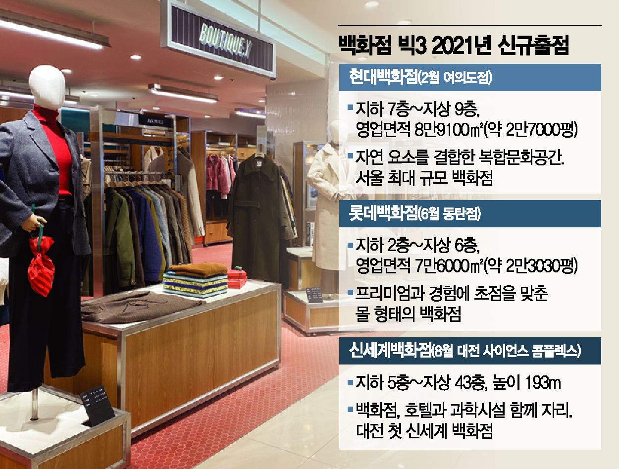 [아시아경제 이승진 기자] 백화점 빅3가 올해 신규 출점을 통해 분위기 반등에 나선다. 백화점 빅3의 신규 출점은 2016년 이후 5년 만이다.