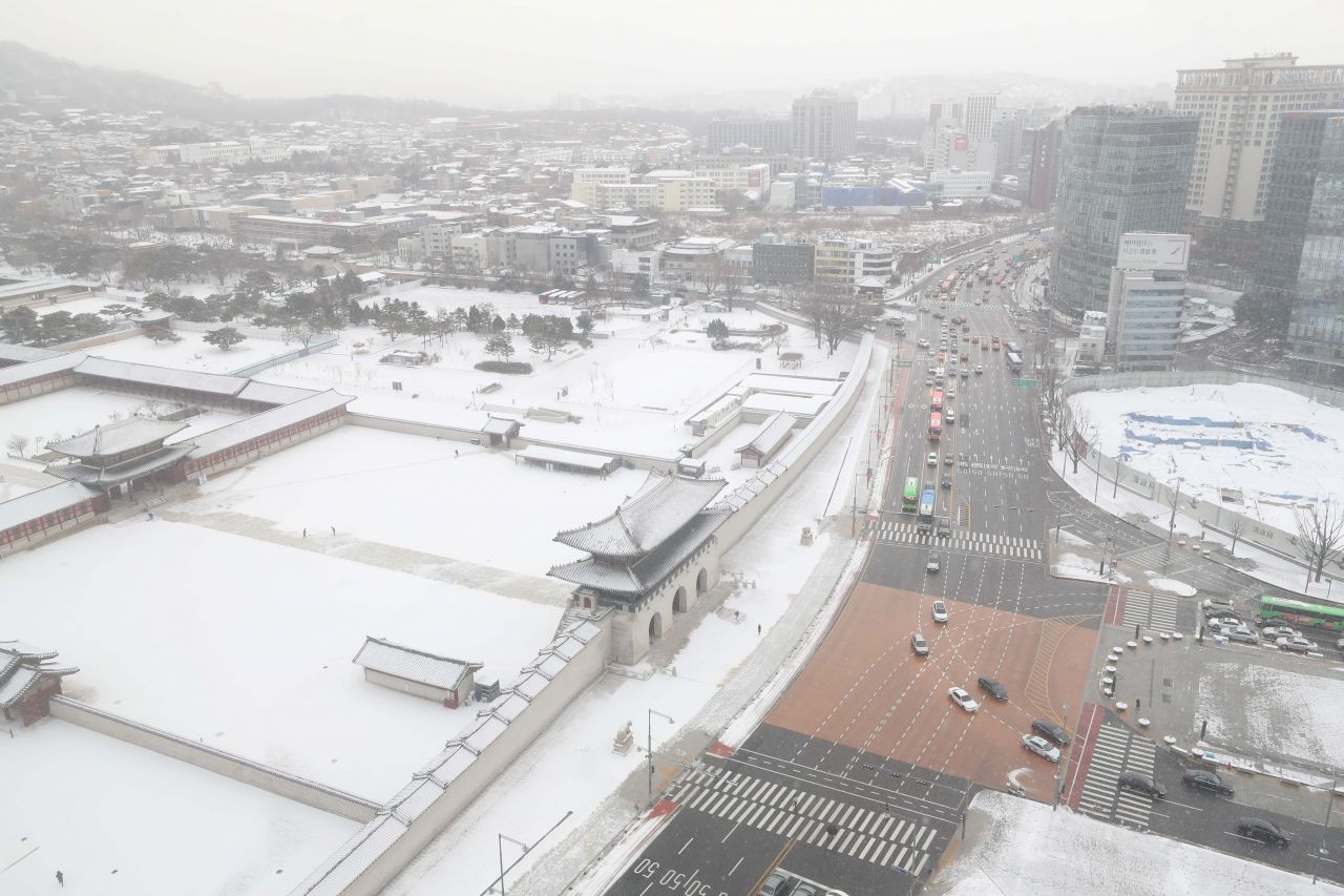 전국 곳곳에 눈이 내린 17일 서울 종로구 경복궁이 하얗게 변해 있다. /문호남 기자 munonam@