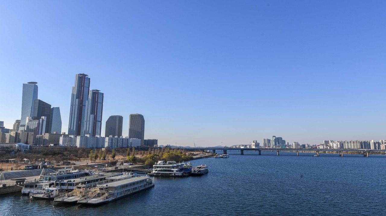 찬바람을 동반한 추위가 찾아오며 미세먼지 농도가 '좋음'을 나타내고 있는 지난해 12월8일 서울 도심에 파란하늘이 펼쳐져 있다./강진형 기자aymsdream@