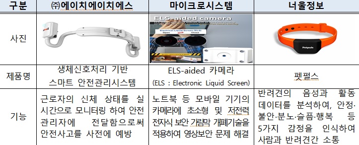 한국관 참가 CES 혁신상 수상 기업 전시 제품.(자료=산업통상자원부)