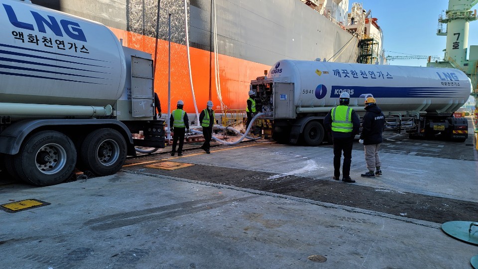이어 지난 10일 거제조선소에서 건조된 10만t급 탱커선에 LNG 탱크로리를 이용한 TTS(Truck to Ship·육상 차량을 통해 선박에 공급) 방식으로 LNG 약 220t을 성공적으로 공급했다. 이는 탱크로리 15대 분량이다.