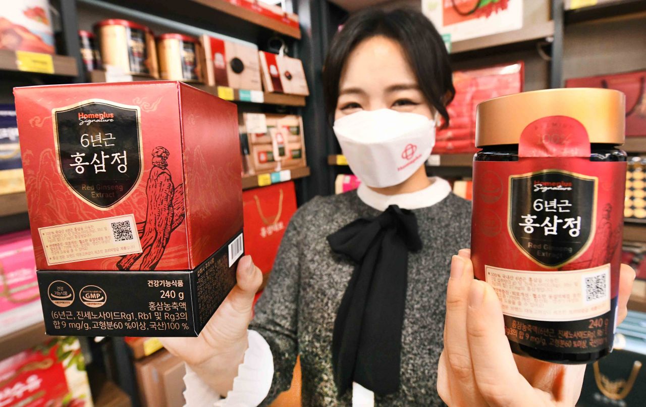 14일 홈플러스에 따르면 작년 9~12월 건강기능식품 매출은 전년 동기 대비 11%, 홍삼 품목은 41% 신장한 것으로 나타났다. 건기식 인기가 높아진 가운데 면역력 증진에 도움이 되는 것으로 알려진 홍삼 품목 수요가 크게 높아졌다.