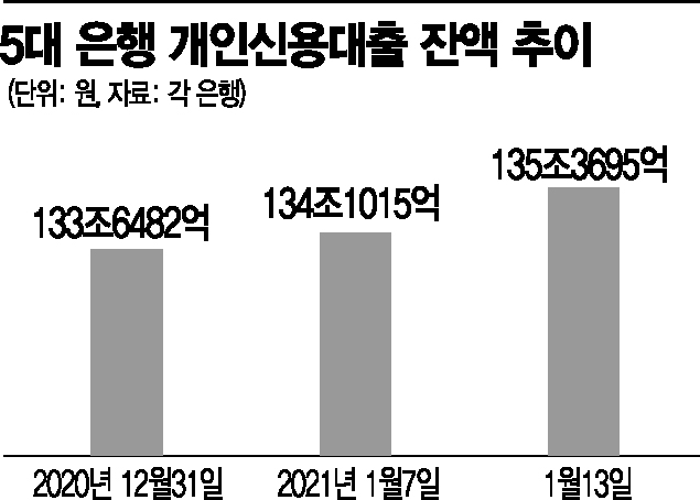 이런 방침에 따른 주요 대출상품 취급 중단 등 고강도 규제로 연말에 크게 꺾였던 신용대출 증가세가 새해 들어 빗장이 풀리기 무섭게 급증세로 돌아선 것이다.