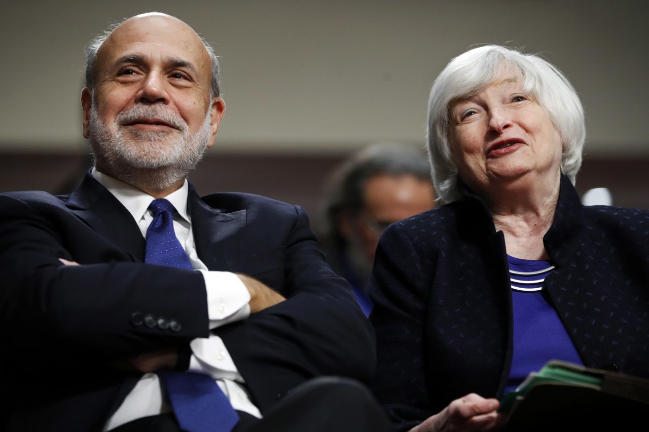 벤 버냉키(사진 왼쪽) 전 미국 연방준비제도(Fed) 의장과 미국 차기 행정부 재무부 장관으로 지명된 재닛 옐런 전 Fed 의장 [이미지출처=AP연합뉴스]