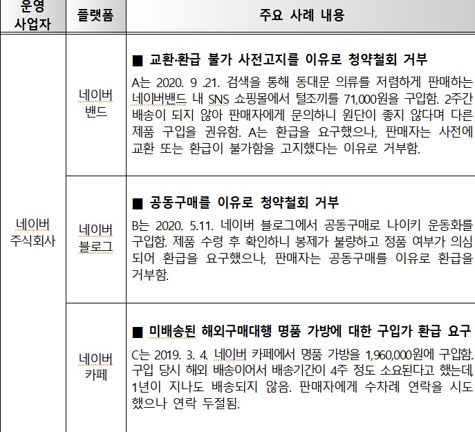 소비자불만·피해 주요 사례.(자료=한국소비자원)