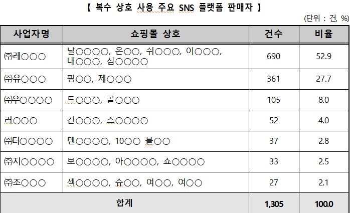 관련 부처엔 SNS 플랫폼 운영사업자의 입점 판매자에 대한 관리 책임을 강화하도록 제도 개선을 건의할 계획이다.