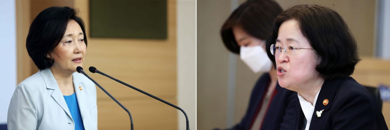 박영선 중기부 장관(왼쪽)과 조성욱 공정위원장.(자료사진)