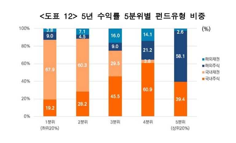 변액보험 수익률 5분위별 펀드유형(자료:미래에셋투자와연금센터)