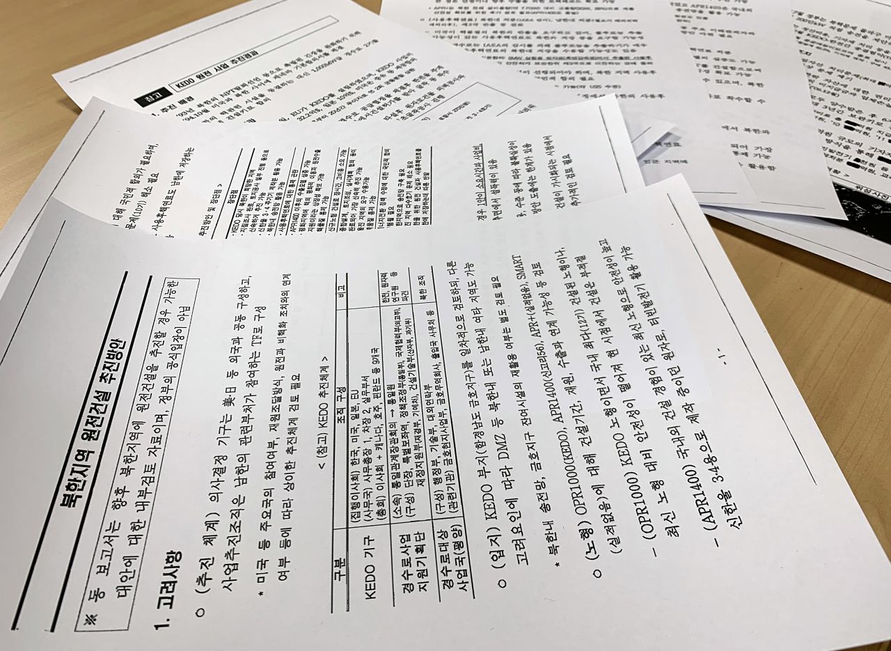 산업부가 공개한 자료는 '북한 지역 원전건설 추진방안 v1.1'이라는 제목의 6쪽짜리다. 자료 첫머리에는 "향후 북한 지역에 원전 건설을 추진할 경우 가능한 대안에 대한 내부 검토 자료이며, 정부의 공식 입장이 아님"이라고 명시돼 있다.