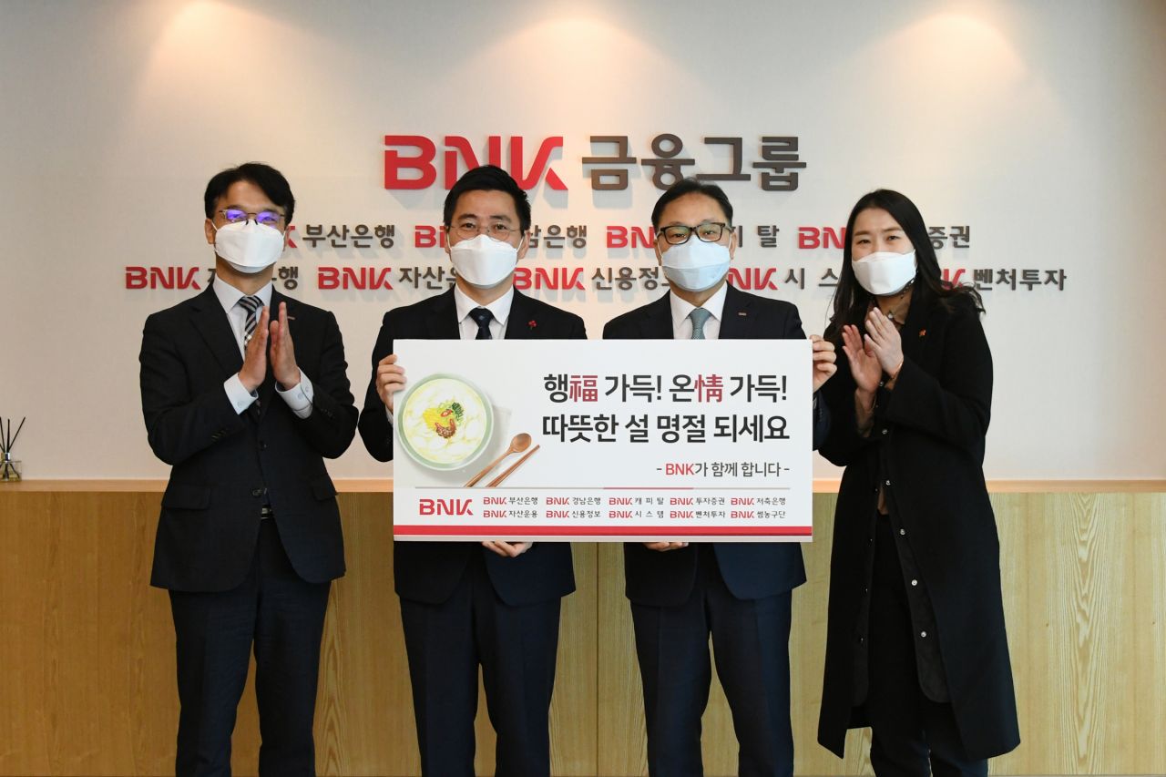 BNK는 이번 행사를 통해 노인복지협회와 복지관 등 부울경 지역 66개 사회복지시설에 3000만원 상당의 떡국떡 1200세트를 전달했다.