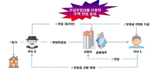 [세종=아시아경제 김현정 기자] A씨는 부친으로부터 투기과열지구 소재의 고가 아파트와 관련 금융채무를 인수하는 조건으로 증여를 받으면서, 수억원을 채무로 신고했다. 그러나 국세청이 부채사후관리를 해보니 집은 부친과 임대계약을 체결했고, 그 임대보증금으로 금융채무를 상환했다. 이후 부친은 퇴거, A씨 본인이 입주하면서 보증금은 돌려주지 않아 A씨는 편법증여 혐의를 받고 있다.