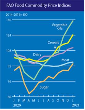 FAO는 1990년 이후 24개 품목에 대한 국제가격 동향을 점검해 곡물, 유지류, 육류, 유제품, 설탕 등 5개 품목군별로 지수를 작성해 매달 발표한다.