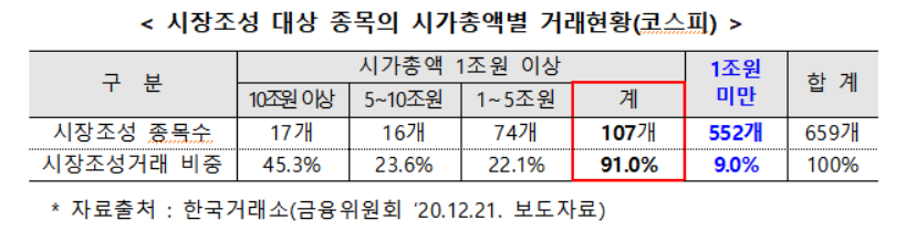 다만 이 같은 조치가 자칫 주식시장 거래를 위축시키는 것 아닌가란 우려도 일각에서 제기된다. 관련해 고광효 기재부 소득법인세국장은 "거래량이 충분한 종목 위주로 제한하는 것이기 때문에 일반투자자의 시장거래에 문제가 없을 것으로 보인다"며 "주식시장에서 시장조성자의 거래대금이 차지하는 비율은 전체 거래대금의 1% 미만으로, 주식시장에 미치는 영향은 크지 않다"고 설명했다. 이어 "앞으로 유동성이 부족한 종목 위주로 시장조성행위가 이뤄질 경우 오히려 전체적인 시장의 효율성이 제고될 수 있다"고 덧붙였다.