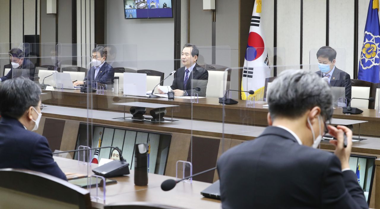정세균 국무총리(가운데)가 9일 오후 세종시 정부세종청사에서 열린 신종 코로나바이러스 감염증(코로나19) 백신·치료제 상황점검 회의를 주재하며 발언하고 있다. 2021.2.9 [이미지출처=연합뉴스]