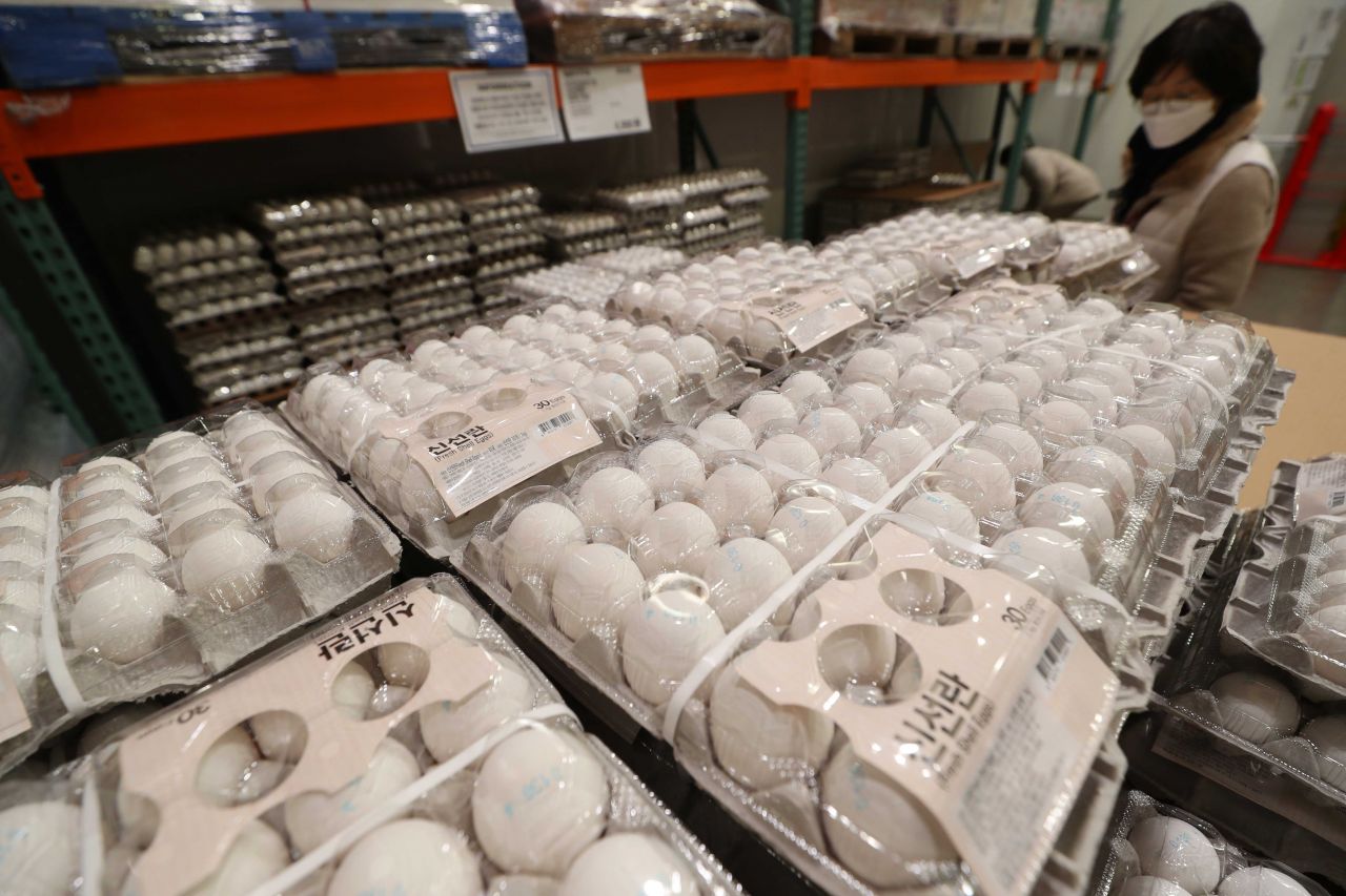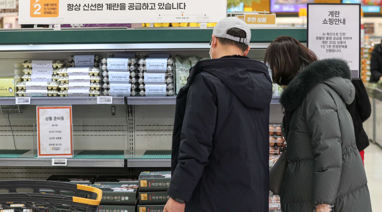 정부가 고병원성 조류인플루엔자(AI) 확산 여파로 급등한 계란 가격 안정을 위해 설 연휴 전 수입산 2000만개를 시중에 공급 계획을 밝힌 2일 서울 한 대형마트에서 시민들이 장으로 보고 있다./강진형 기자aymsdream@