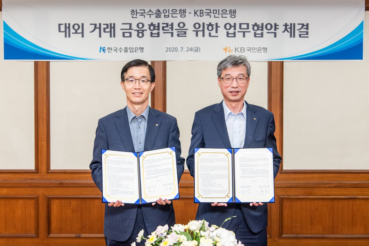 수출입은행은 방문규 수은 행장과 허인 KB국민은행장이 24일 오후 수은 여의도 본점에서 만나 대외협력 강화를 위한 업무협약(MOU)을 체결했다고 밝혔다.