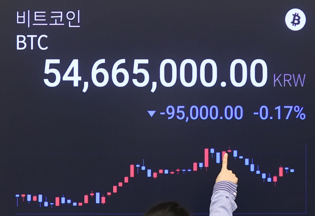 17일 오전 서울 강남구 암호화폐 거래소 업비트 라운지 시세 전광판에 비트코인 시세가 표시되고 있다. [이미지출처=연합뉴스]