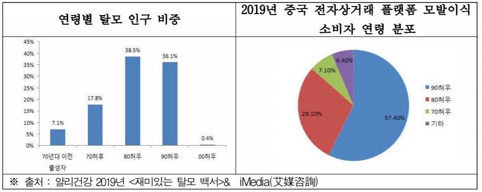 중국인들은 탈모 방지를 위해 생강도포·식이요법 등 전통적 방법에서부터 탈모방지 샴푸·발모액·발모 물리치료 보조기·가발 등 제품을 활용할 뿐만 아니라 모발이식도 적극적으로 시도하고 있다고 분석됐다. 모발이식 수술의 경우에도 1990년대생이 전체 수술 환자의 57.4%로 가장 많았다.