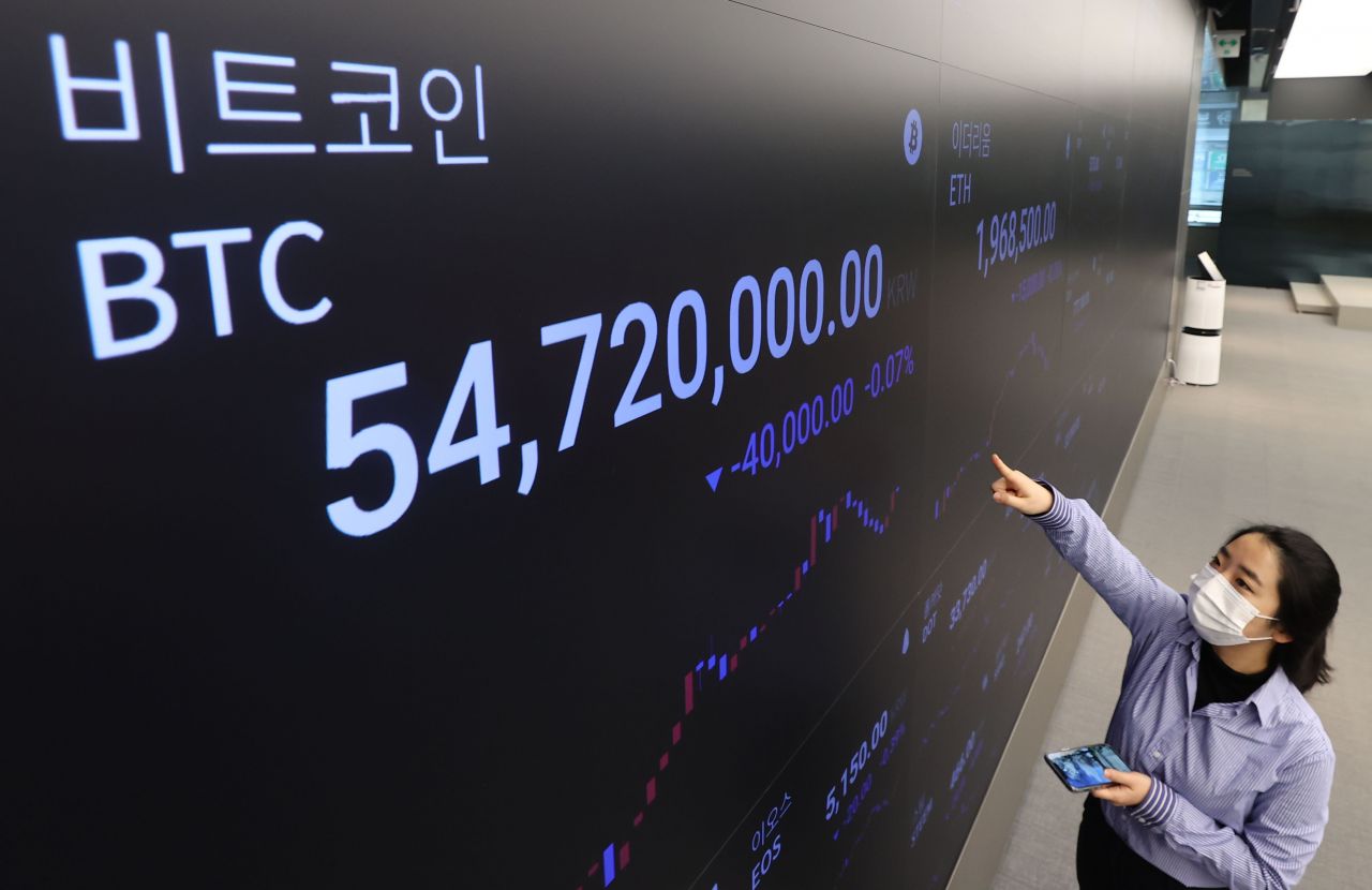 지난 17일 서울 강남구 암호화폐 거래소 업비트 라운지 시세 전광판에 표시된 비트코인 시세[이미지출처=연합뉴스]