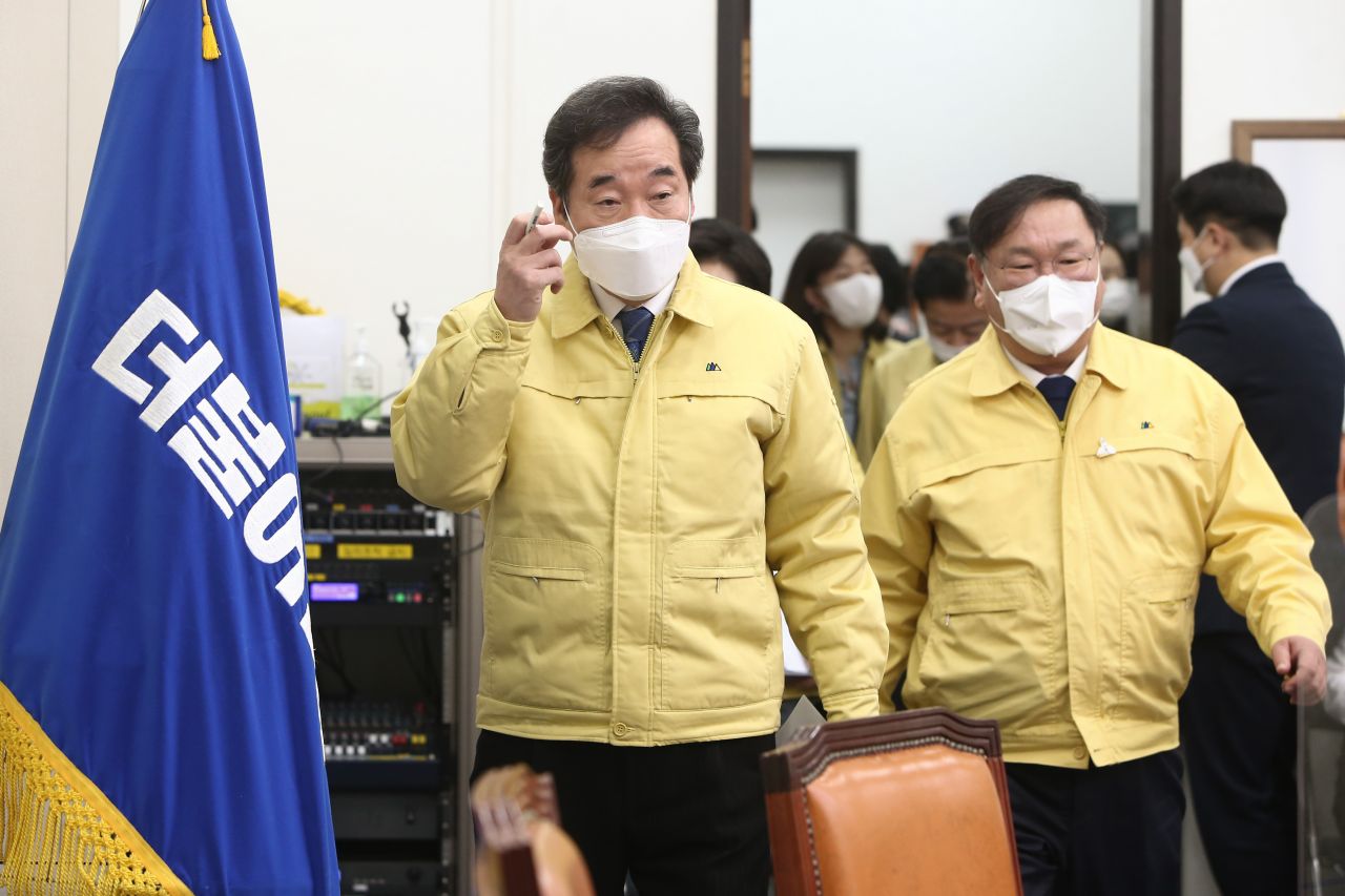 이낙연 더불어민주당 대표와 김태년 원내대표가 26일 국회에서 열린 최고위원회의에 참석하고 있다./윤동주 기자 doso7@