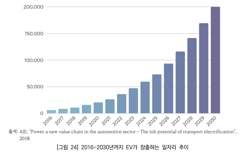 전기차·신재생, 일자리 창출 가능성↑진흥원은 전기차 등 자동차 분야의 새로운 가치사슬 강화를 통한 일자리 창출 가능성을 제시했다.