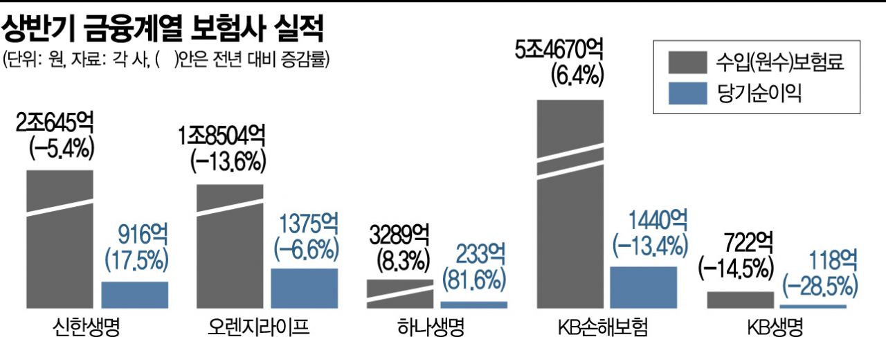 신한, KB 보험계열사 상반기 실적 예상보다 저조