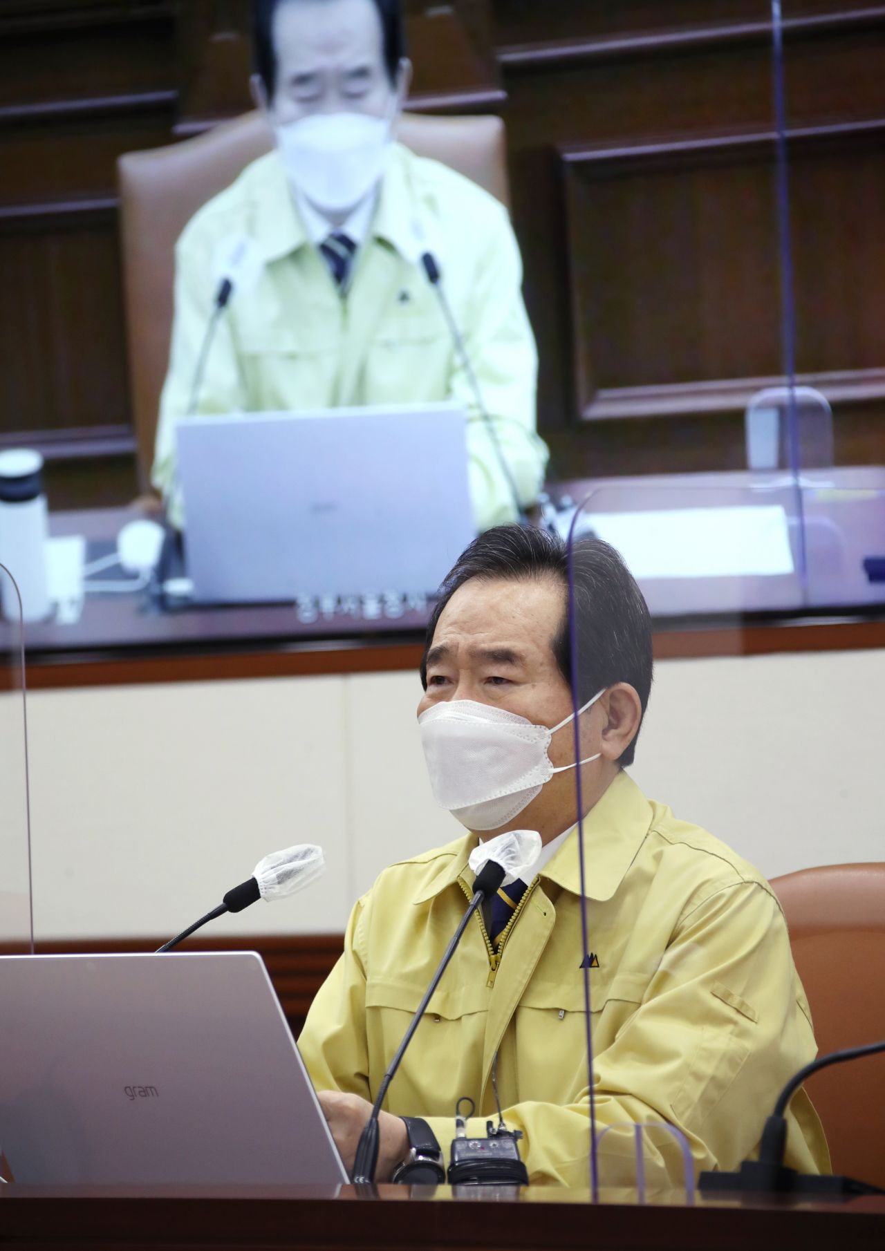 정세균 국무총리가 11일 정부서울청사에서 열린 신종 코로나바이러스 감염증(코로나19) 대응 중앙재난안전대책본부(중대본) 화상회의를 주재하고 있다. 2021.3.11 [이미지출처=연합뉴스]