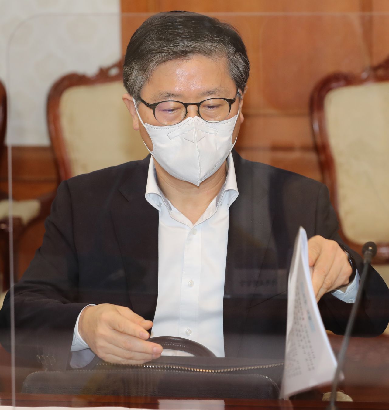 변창흠 국토교통부 장관이 14일 정부서울청사에서 열린 LH 후속조치 관계장관회의에서 자료를 보고 있다. 2021.3.14 [이미지출처=연합뉴스]