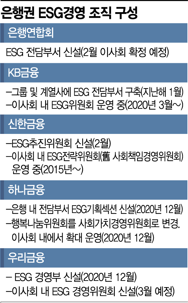이러한 ESG 열풍은 곧 열리는 금융사별 주주총회에서도 이어질 것으로 전망됩니다. 금융권이 이사회 내에 ESG 관련 위원회를 잇달아 신설했기 때문입니다. 하나금융은 지속 가능 경영위원회를, 우리금융은 ESG 경영위원회를 신설했죠. 신한지주는 사회책임경영위원회를 ESG 전략위원회로 명칭을 바꾸게 됩니다.