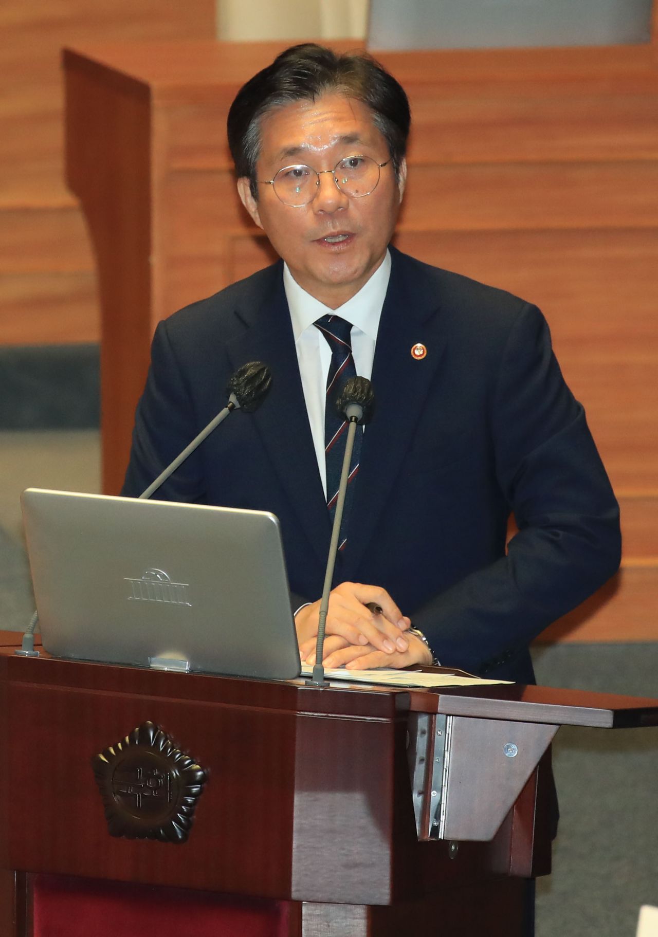 성윤모 산업통상자원부 장관이 지난 23일 국회에 참석해 경제 관련 대정부 질문에서 질의에 답하는 모습.(사진=연합뉴스)