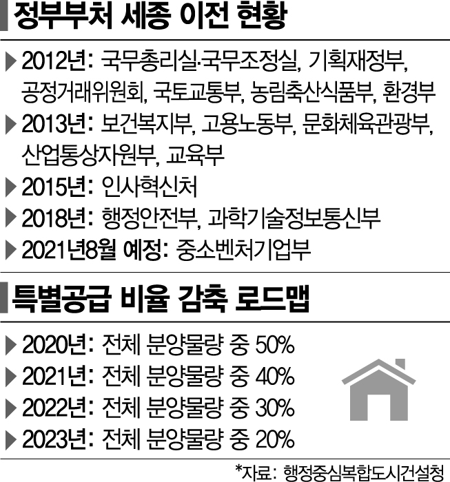 행복청 관계자는 "중기부는 내년 7월부터 5년간 특별공급 신청 대상이 된다"며 "소속 공무원들이 각 부처의 장관으로부터 확인서를 발급받고 신청하게 된다"고 밝혔다. 주택 공급에 관한 규칙에 따르면 세종을 포함한 혁신도시로 이전하거나 새로 설치하는 국가기관, 공공기관 종사자의 경우 특별공급을 받을 수 있도록 명시돼 있다.