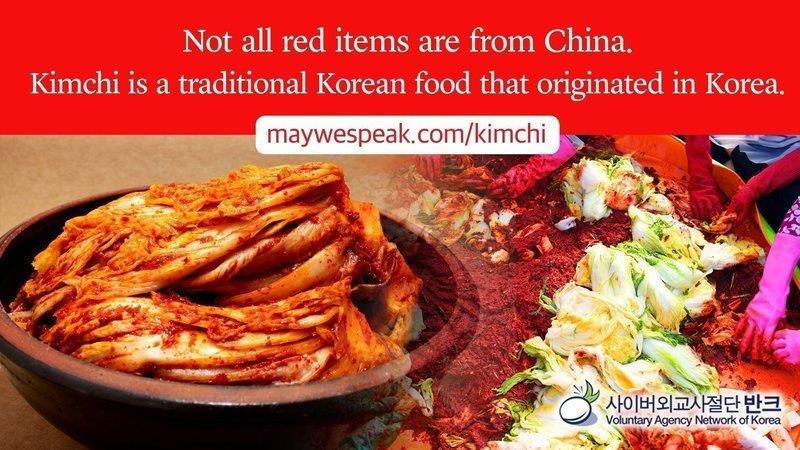 사이버 외교 사절단 반크가 김치를 세계에 알리기 위해 만든 디지털 포스터. 지난해 11월29일 중국의 관영 매체인 환구시보는 "중국의 절임 채소인 파오차이(泡菜)를 국제표준화기구(ISO)가 국제표준으로 정했기에 '한국 김치도 파오차이에 해당하므로 이젠 중국이 김치산업의 세계 표준'"이라고 왜곡 보도한 바 있다.(이미지 출처=연합뉴스)