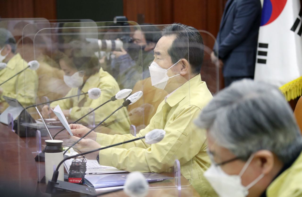 정세균 국무총리가 휴일인 21일 정부서울청사에서 열린 신종 코로나바이러스 감염증(코로나19) 대응 중앙재난안전대책본부(중대본) 회의를 주재하며 발언하고 있다. 2021.3.21 [이미지출처=연합뉴스]