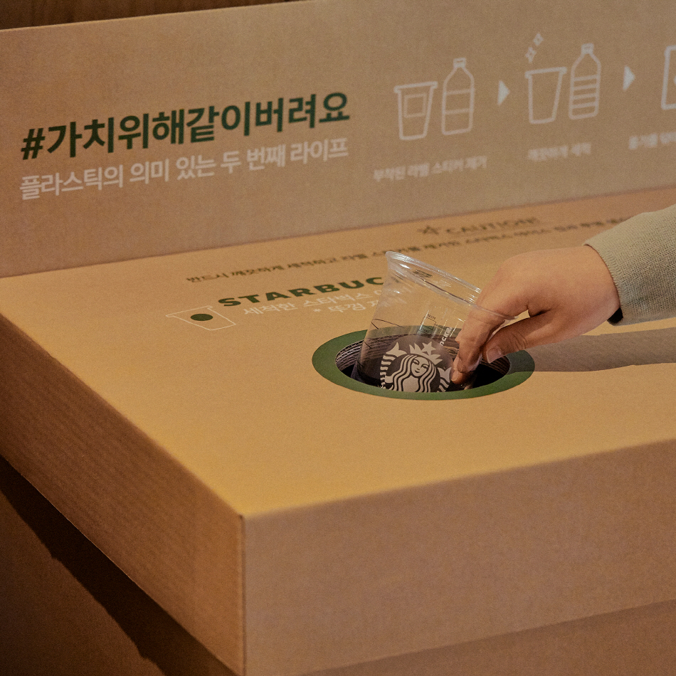 스타벅스 플라스틱 컵(뚜껑 제외) 또는 투명 생수병(PET)에 부착된 라벨을 제거하고, 깨끗하게 세척해 물기를 제거한 후 스타벅스 매장 내 비치된 전용 수거함에 넣는 사진과 필수 해시태그를 함께 업로드하면 추첨을 통해 스타벅스 무료 음료 쿠폰을 증정한다. 재탄생 할 상품에 대한 다양한 아이디어를 댓글로 남겨주면 추첨을 통해 리사이클링 상품을 경품으로 증정한다.