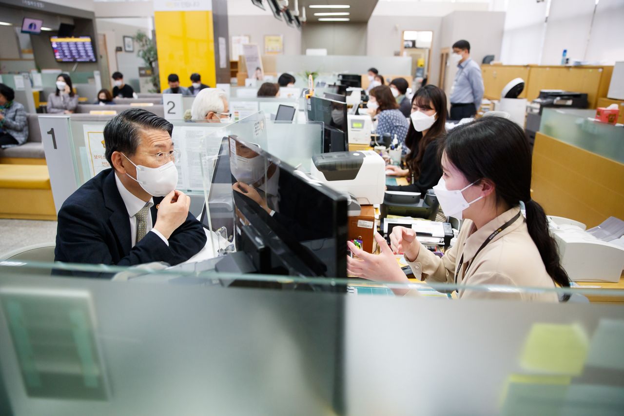 [포토]은성수 금융위원장, 금소법 관련 은행 창구 현장방문