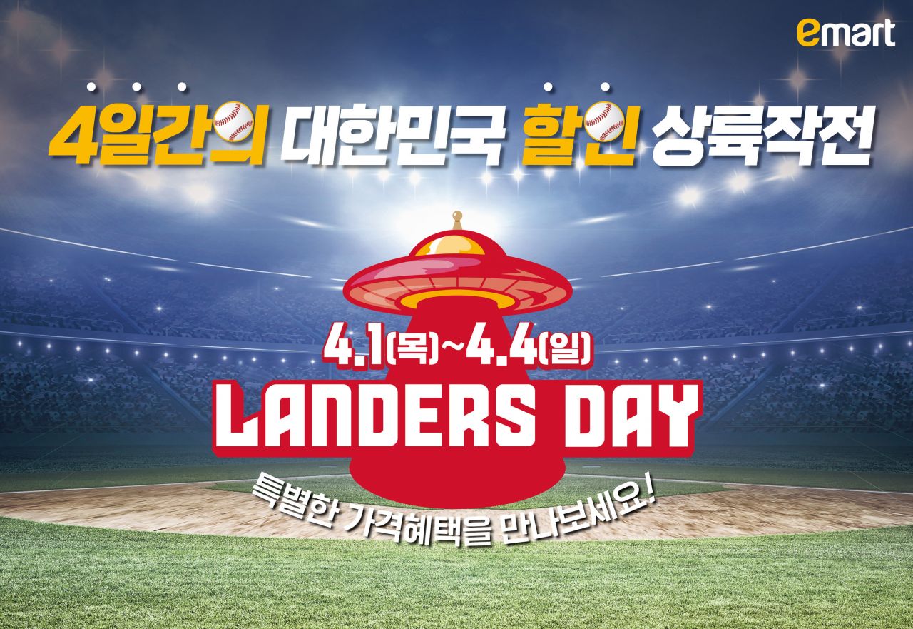 이마트도 같은날부터 야구단 창단을 기념하는 랜더스 데이 행사에 나섰다. 행사 상품 500여종 가운데 하나를 사면 하나를 더 주는 1+1 대상만 80여종에 이른다. 이는 올해 상반기 최대 규모다. 이마트 관계자는 "신세계가 랜더스를 통해 새로운 야구 문화를 랜딩시킨다면 이마트는 고객에게 최대의 할인 혜택을 상륙시킬 예정"이라고 밝혔다.