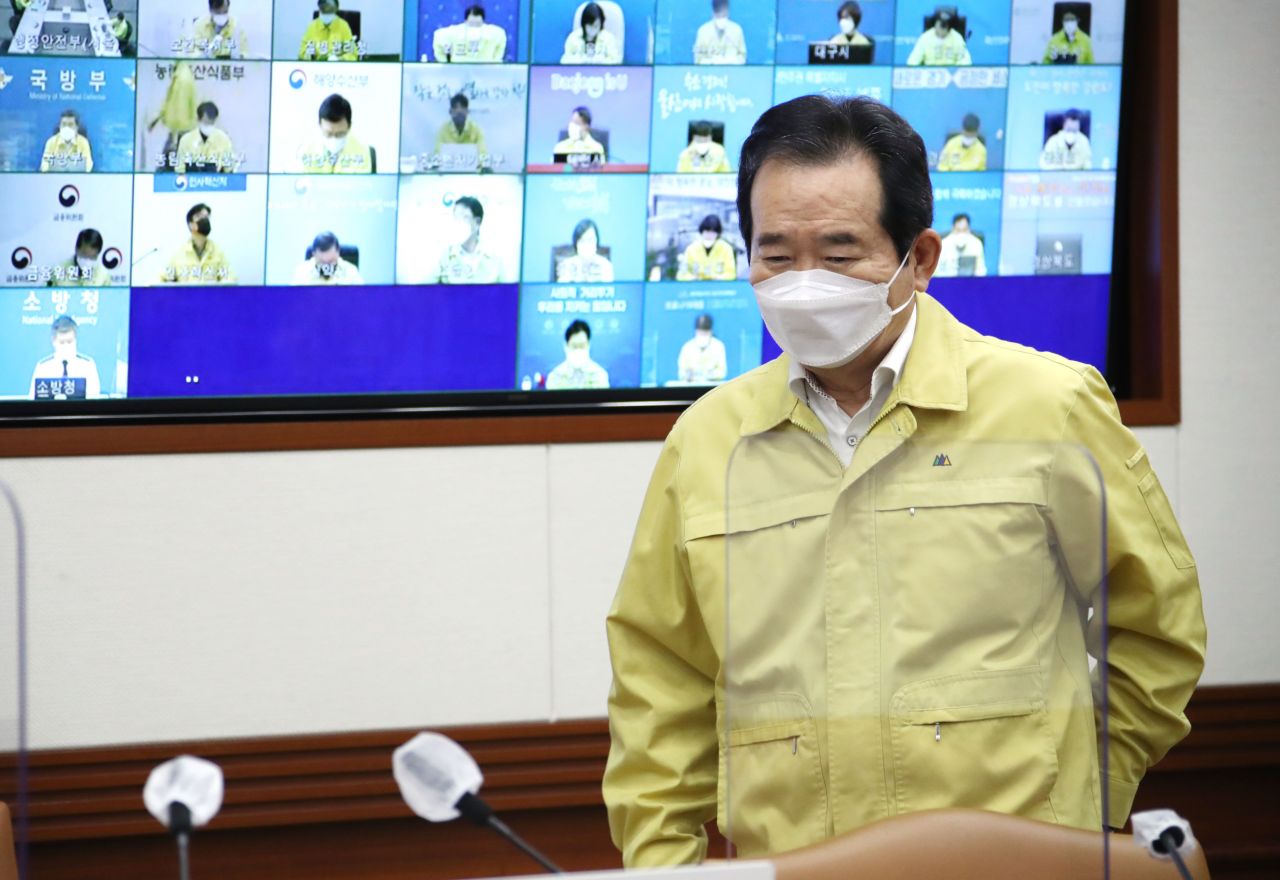 정 총리는 이날 오후 정부서울청사에서 코로나19 중앙재난안전대책본부 회의를 주재하고 "확진자가 급증한 일부 지역에서 거리두기를 격상하는 등 대응에 나서고 있지만, 일상 곳곳에서 감염이 계속되고 있다"며 "정부는 현 상황을 엄중하게 인식하고, 더는 물러설 곳이 없다는 각오로 이번 한 주를 시작하고자 한다"며 이같이 말했다.
