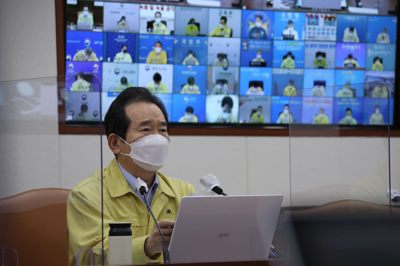 정세균 국무총리가 8일 정부서울청사에서 열린 코로나19 대응 중대본 회의를 주재하고 있다. 2021.4.8 [이미지출처=연합뉴스]