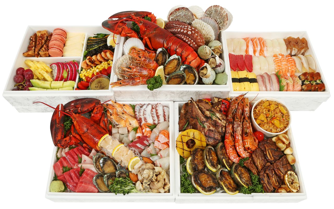 보노보노 삼성점에서 새롭게 선보인 ‘프리미엄 파티팩’은 랍스터 회와 찜, 참치 특수부위, 전복, 가리비, 초밥 등 고급 해산물로 만든 메뉴를 비롯해 양갈비, LA갈비, 계절과일, 디저트 등을 5가지 플래터에 담아 구성한 것이 특징이다. 가격은 39만9000원이다.