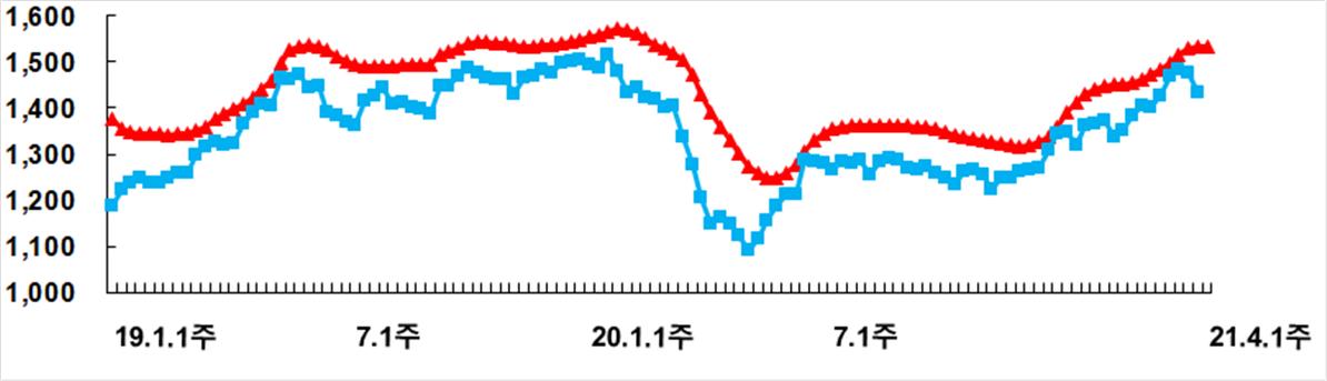 경유 판매가격은 전주 대비 1.2원 상승한 1333.4원/ℓ이다. 알뜰주유소의 평균가격이 1304.2원/ℓ로 가장 낮았고, GS칼텍스 주유소가 가장 높은 1341.7원/ℓ을 기록했다.