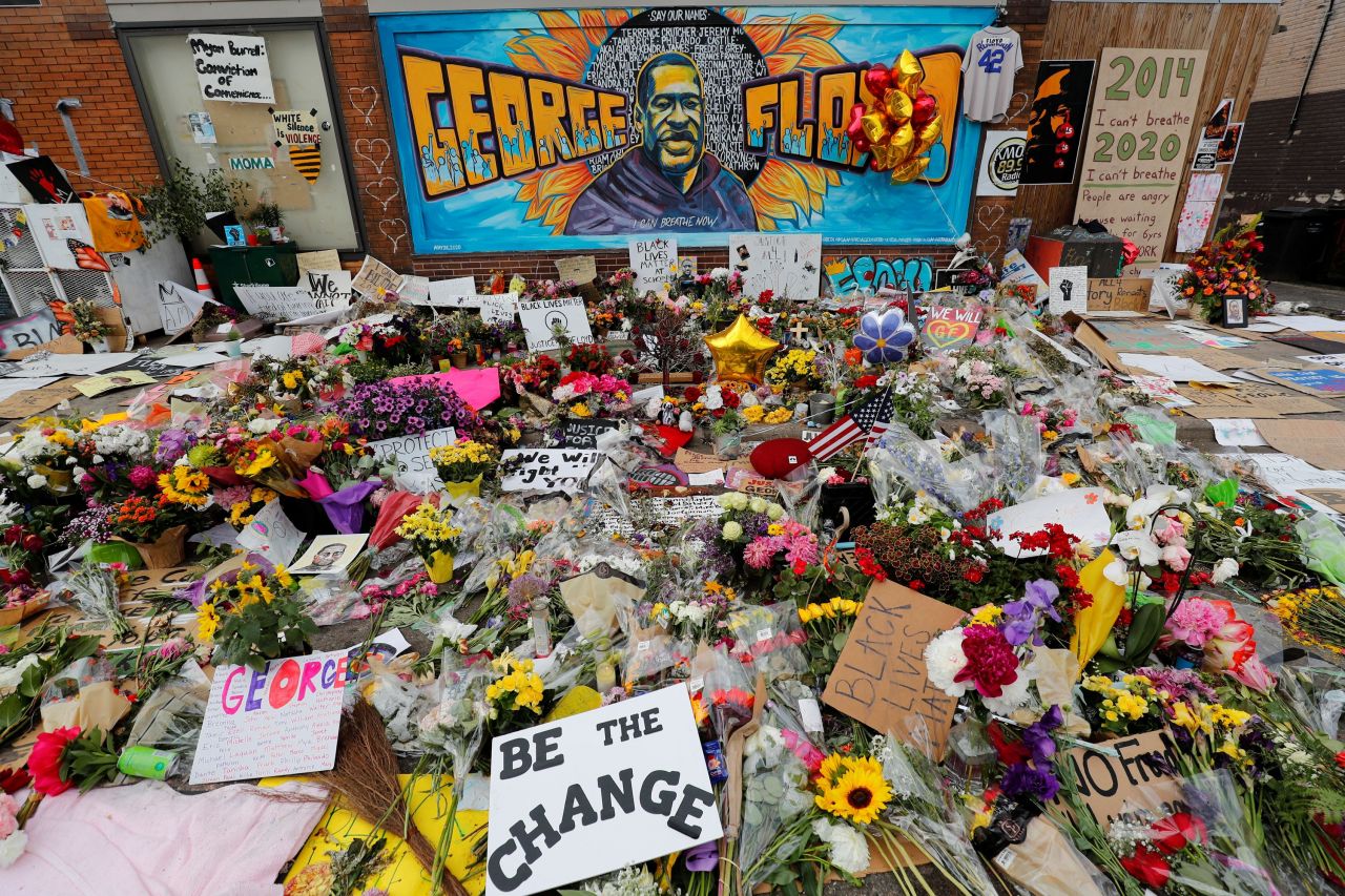 백인 경찰의 가혹 행위로 흑인 남성 조지 플로이드가 숨진 미국 미네소타주에 추모객들이 남긴 조화와 메모 [사진=연합뉴스]