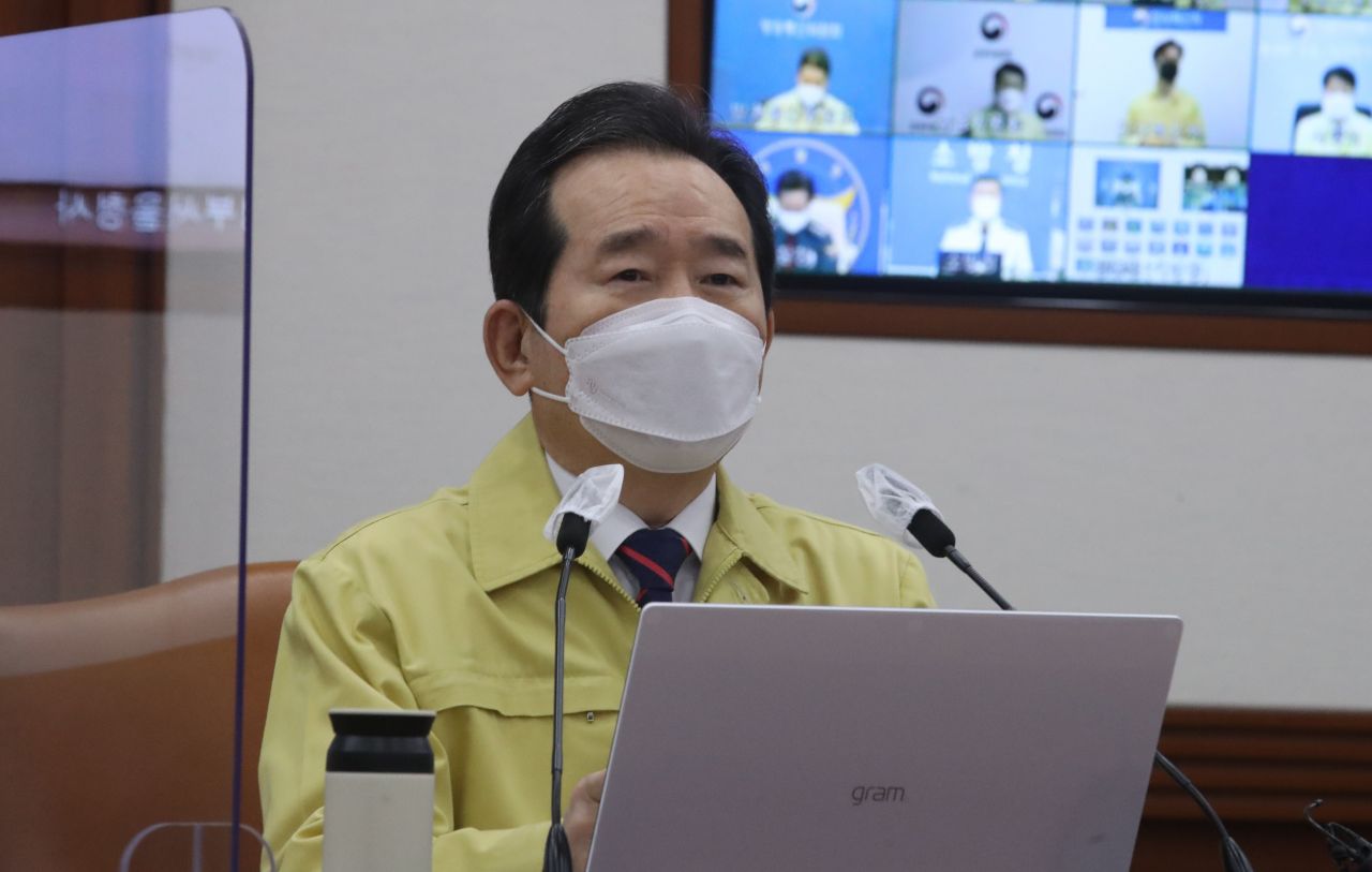 정세균 국무총리가 16일 서울 종로구 정부서울청사에서 열린 코로나19 대응 중앙재난안전대책본부(중대본) 회의에 참석해 발언하고 있다./김현민 기자 kimhyun81@