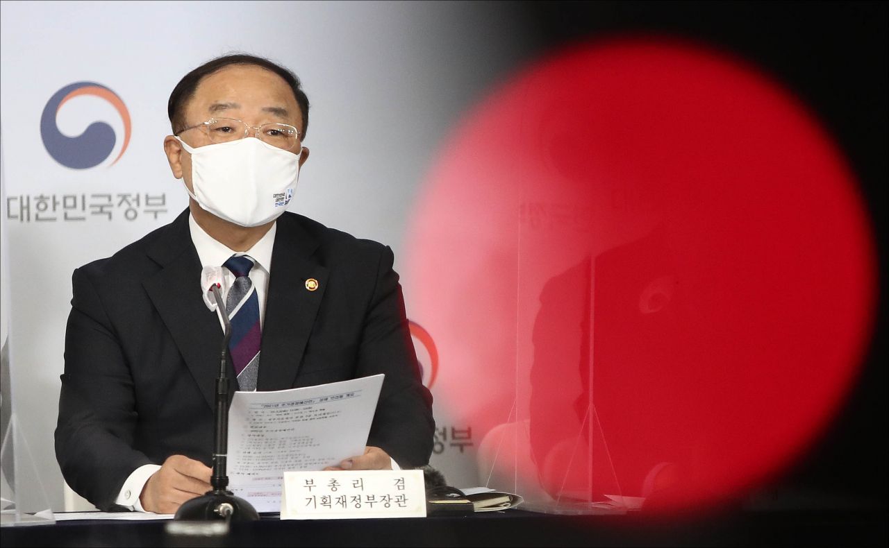 홍남기 경제부총리 겸 기획재정부 장관이 2일 서울 종로구 정부서울청사에서 2021년 추가경정예산안 브리핑을 하고 있다. /문호남 기자 munonam@