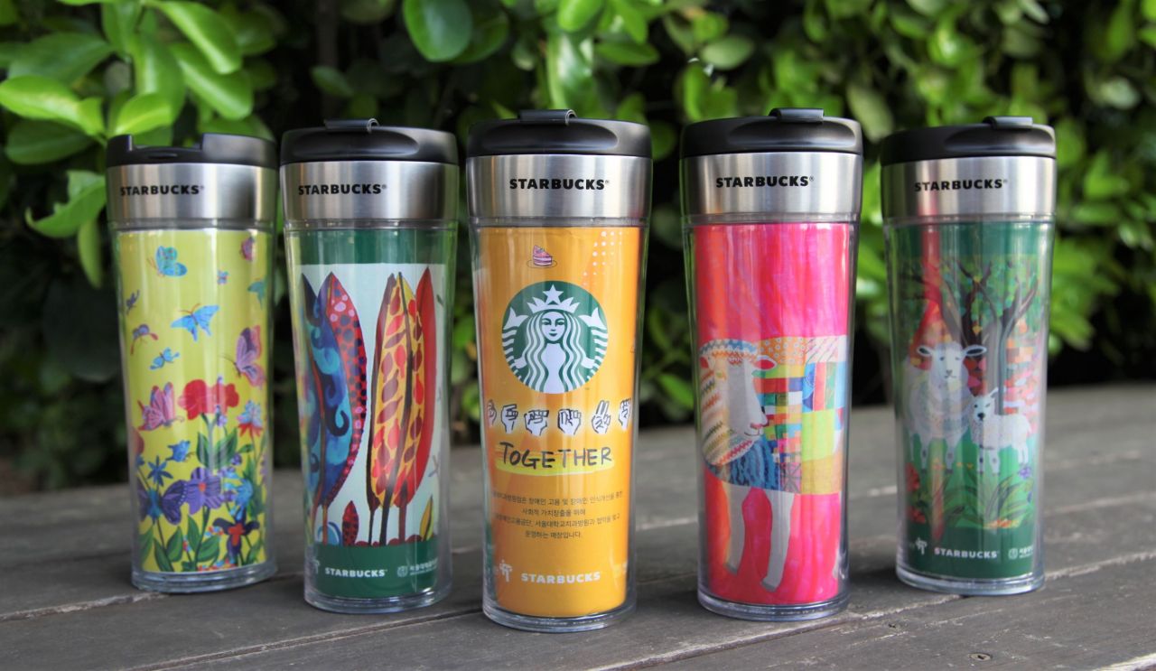 스타벅스 장애인 파트너와 발달장애인 작가들의 작품이 담긴 스타벅스 크리에이티브 텀블러.