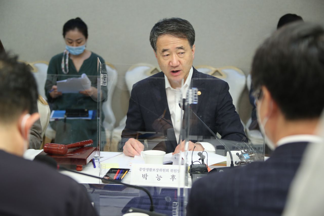 박능후 보건복지부 장관이 31일 정부서울청사에서 열린 중앙생활보장위원회를 주재하고 있다.(사진=연합뉴스)