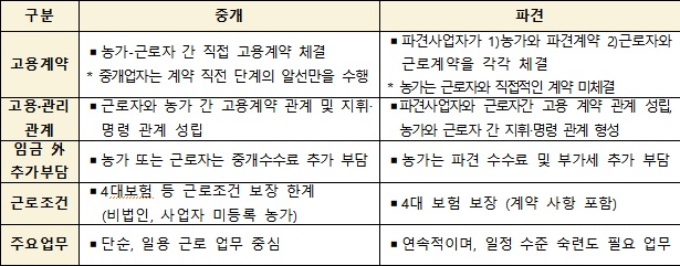 중개-파견 방식 비교.(자료=농림축산식품부)