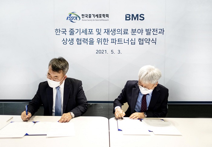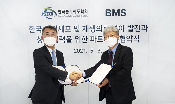 한국줄기세포학회(회장 송지환)는 5월 3일 역삼동 비엠에스(BMS) 빌딩에서 생명과학 전문 중견 기업 ㈜비엠에스(대표 김선기)와 줄기세포 및 재생의료 분야의 발전을 위한 업무 협약(MOU)을 체결했다고 밝혔다.