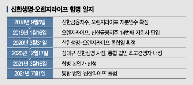 신한생명과 오렌지라이프는 2019년 1월 오렌지라이프의 그룹 자회사 편입 이후 ‘뉴라이프 추진위원회’를 가동하면서 본격적인 통합작업을 진행해왔다.
