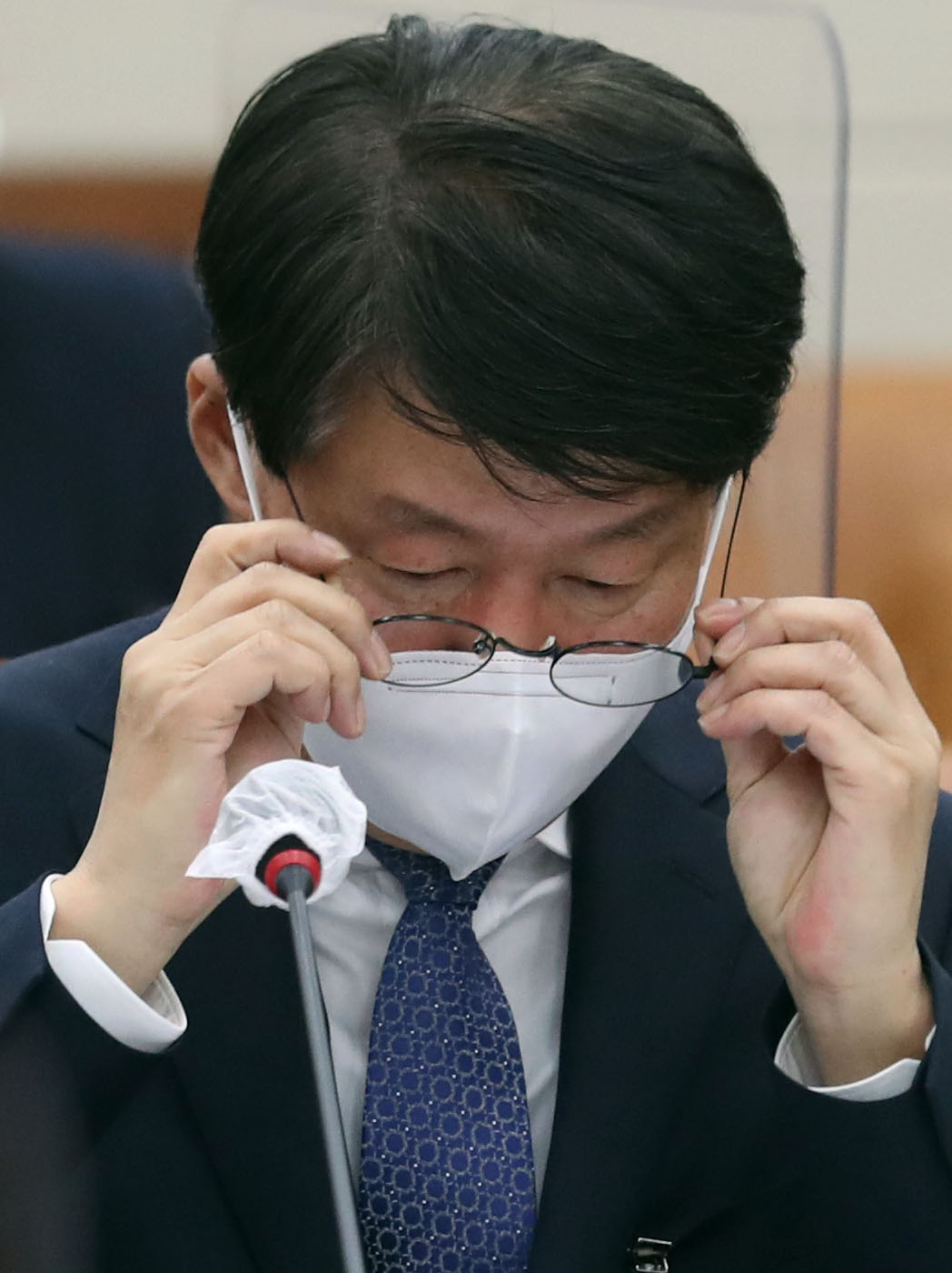 안경덕 고용노동부 장관 후보자가 4일 국회에서 열린 인사청문회에 출석, 안경을 바로쓰고 있다./윤동주 기자 doso7@